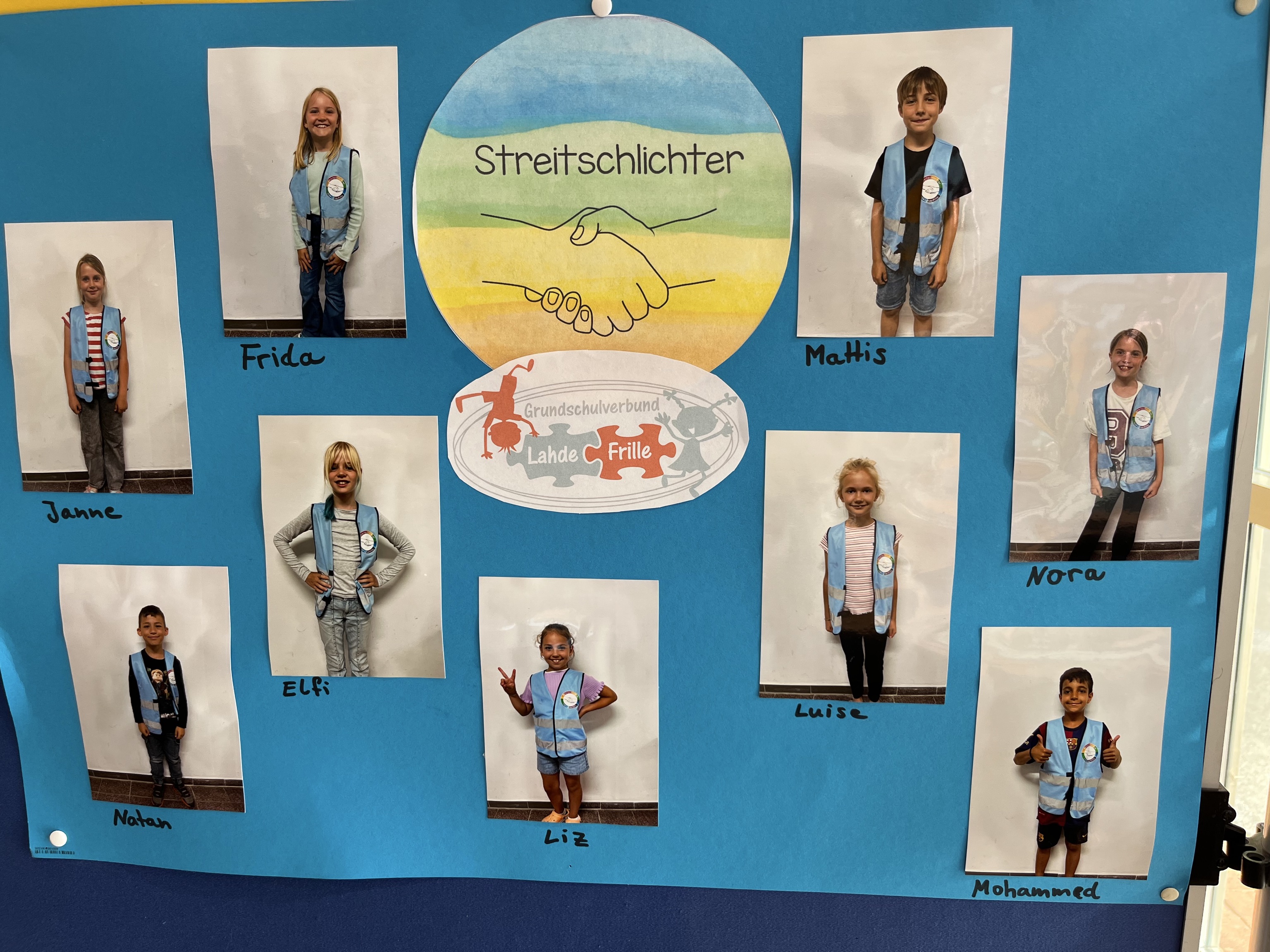 Von Montag bis Donnerstag sind sie in der 1. und 2. Pause auf dem Schulhof aktiv. Blaue Westen machen Sie erkenntlich. Im Forum findet Ihr ein Plakat, wo sich alle Streitschlichter*innen vorstellen. Auch in Frille hängt ein solches Plakat an der Tür des Lesecafe´s.
