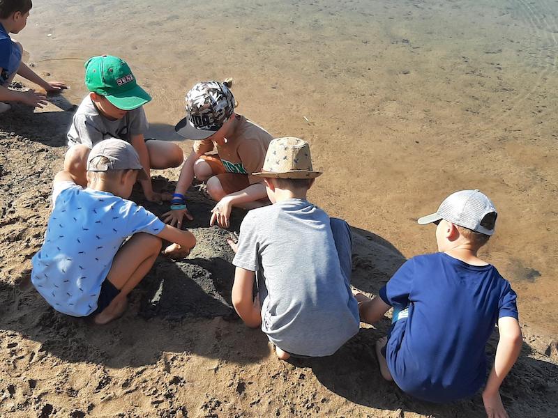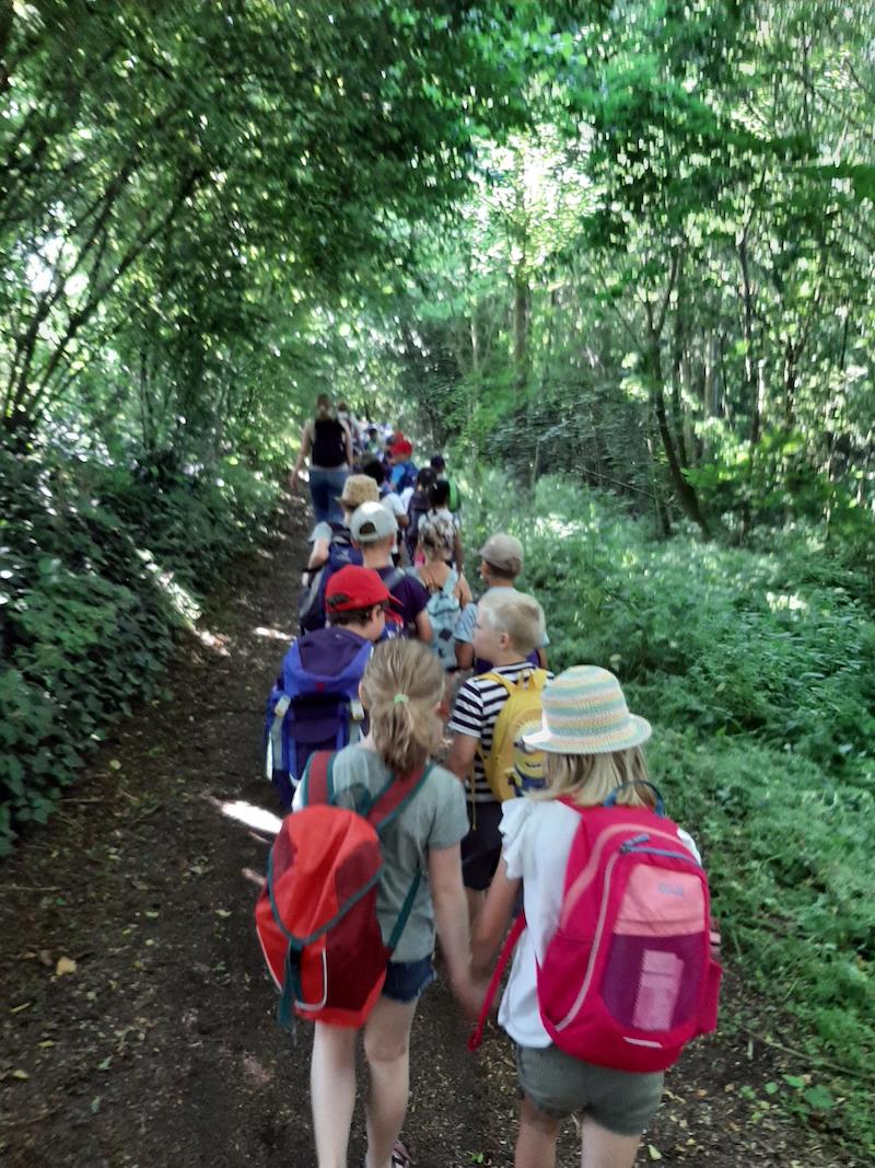 Der Jahrgang 1 hat bei bestem Wetter einen "Fußmarsch" zum Lahder Badesee gemacht.